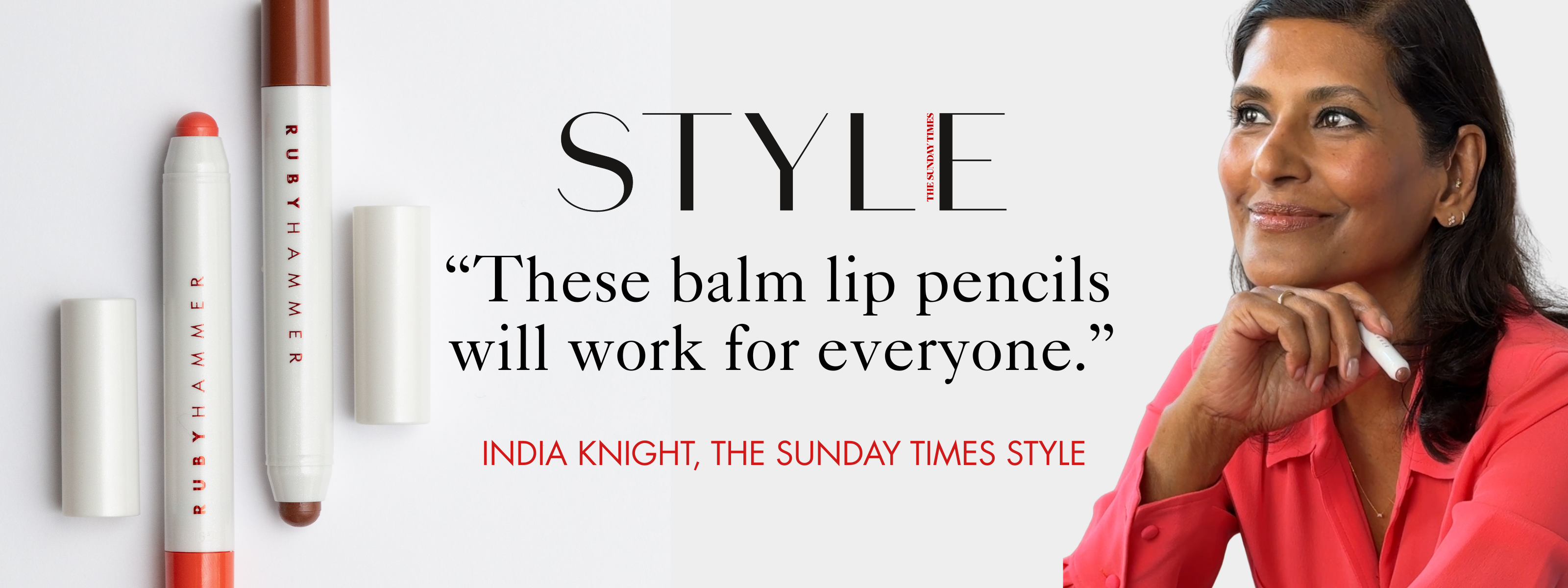 Discover how to get Ruby Hammer's signature dewy lip with Lip Serum alm. “These balm lip pencils will work for everyone.” India Knight, The Sunday Times Style
